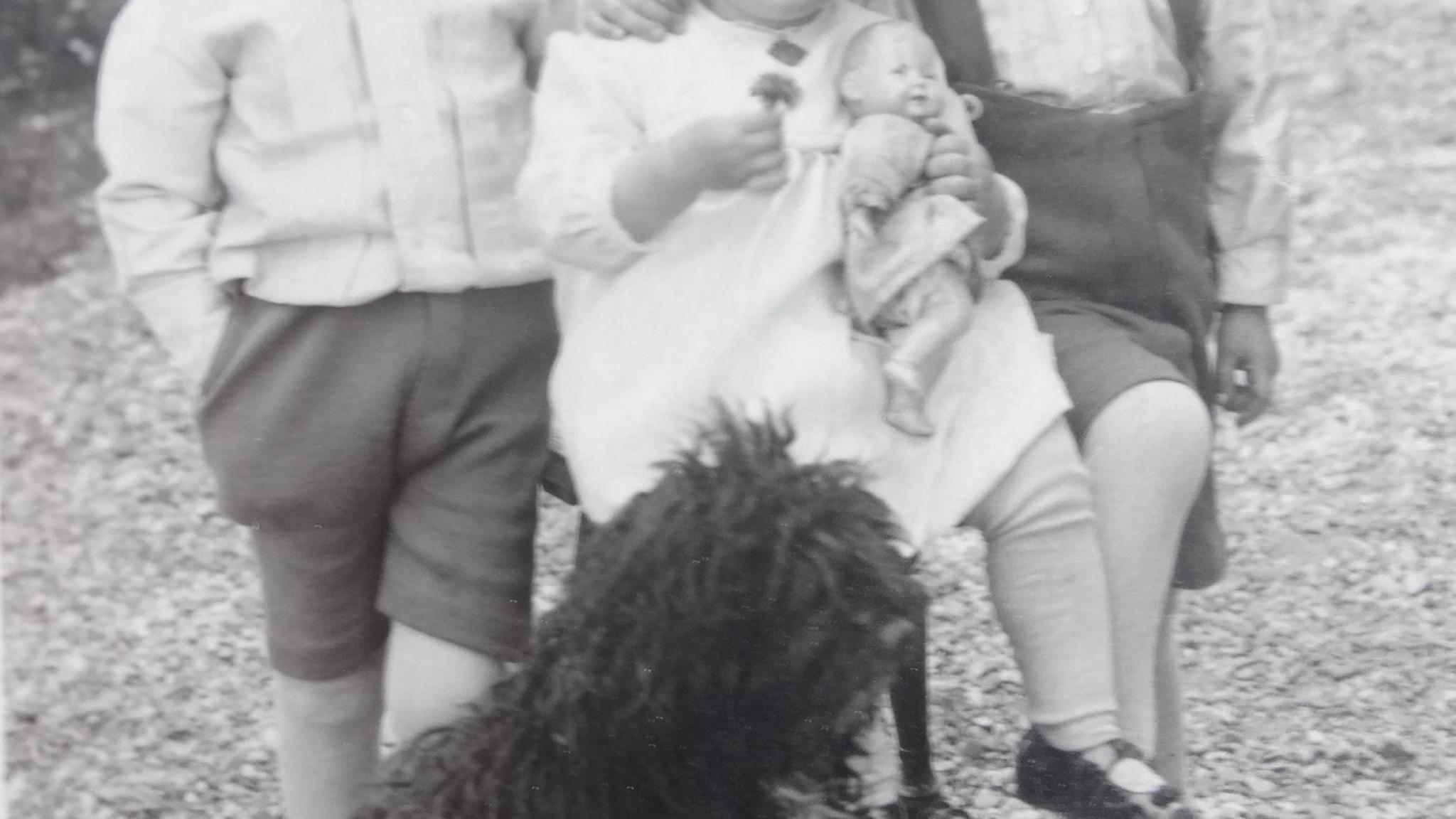 FOTO: Rolf Bremmer (links) met zijn zusje Mieke, broertje Daniël en hond Polly in 1923.